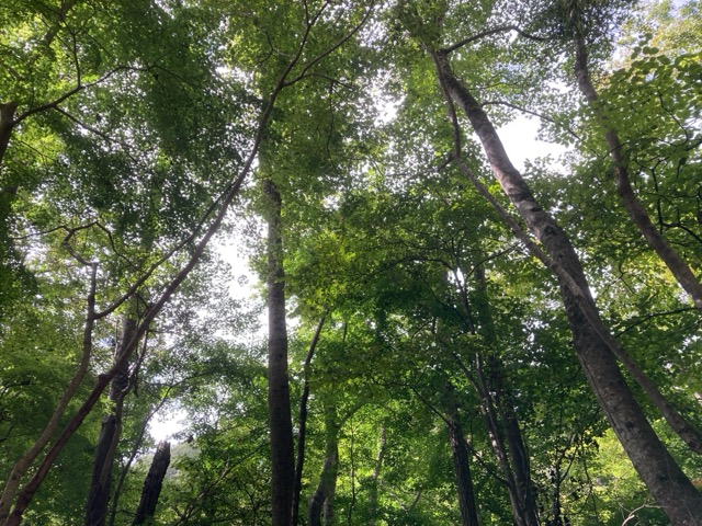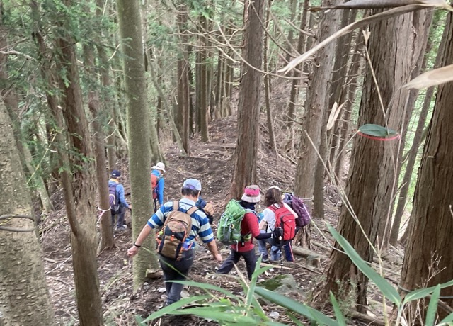 13:00 矢倉沢集落に向けて下山を開始。頂上付近は、明るい林で気持ちがいいです。