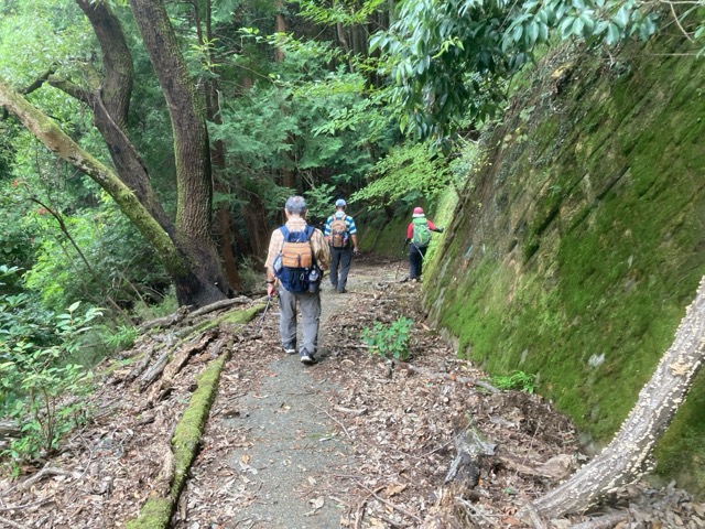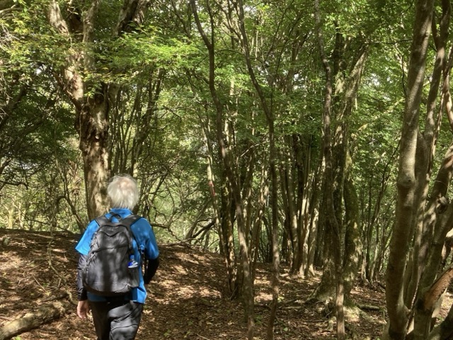 万葉公園からの登山道に突き当たると勾配はゆるやかになり 細かなアップダウンが続きます。