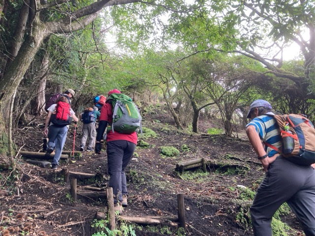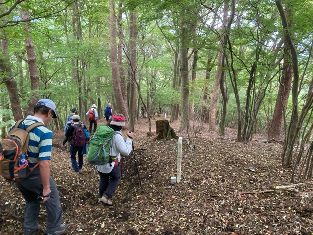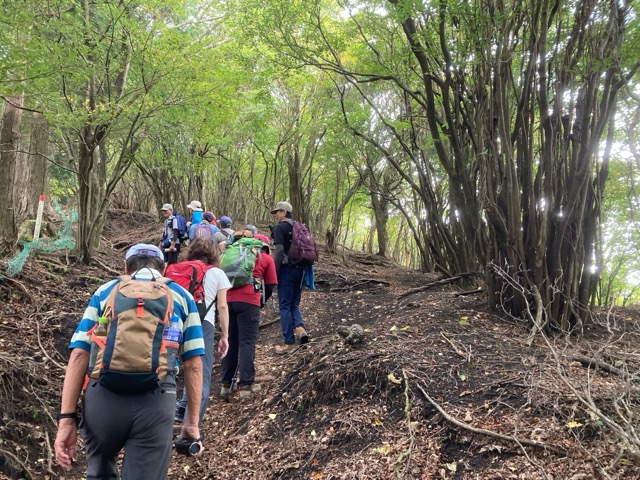 シニア山歩きの会の皆さんと箱根の矢倉岳ハイキングを楽しみました (*^_^*) 。頂上への登山道は何本かありますが、今回は地蔵堂バス停から万葉ハイキングコースを登り、矢倉沢バス停に下りました(2025/10/18)。