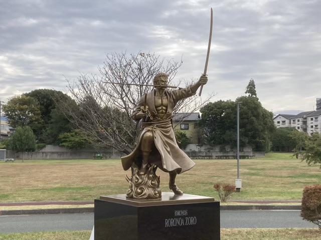 一日目は、阿蘇観光だったので、空港近くのゾロ像から訪問。大津中央公園駐車場の奥に車を停めると像はすぐそこです。