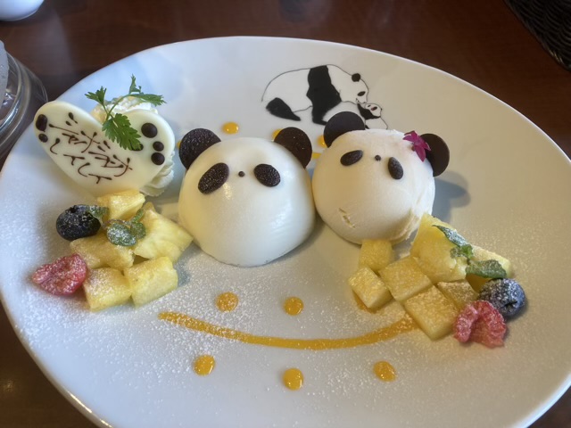 精養軒で定評のあるビーフシチューとグラタンを妻と半分ずついただきました。奮発してデザートに双子パンダセットも注文。ババロアシャオシャオバニラアイスレイレイなのだそうです。かわいいですね。美味しかったです。