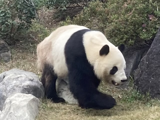 パンダはあまり動かないイメージが強かったのですが、今日は室内と室外を動き回っていました。