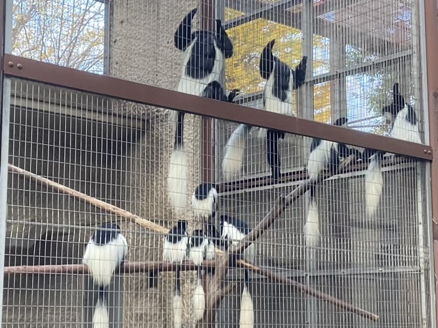 パンダ同様、白黒模様のおさるがいました。みんな同じ格好で休んでいます。アビシニアコロブス、面白いですね。