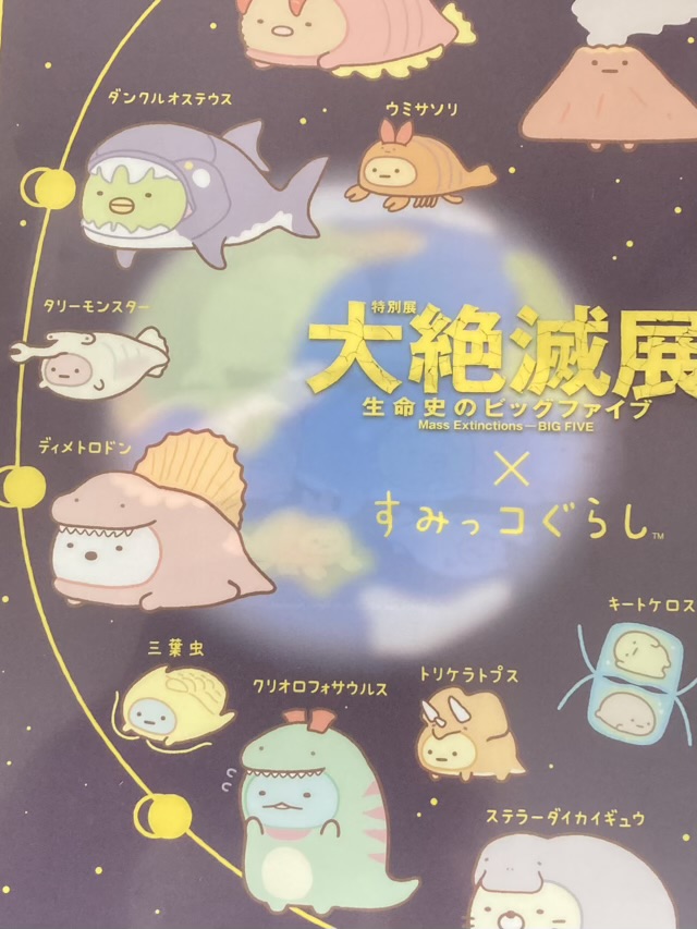 生物の移り変わりだけではなく、地殻変動や火山の様子等、幅広く絶滅前後の様子が解説されていました。標本・化石も多数展示されていて見応えがありましたね。